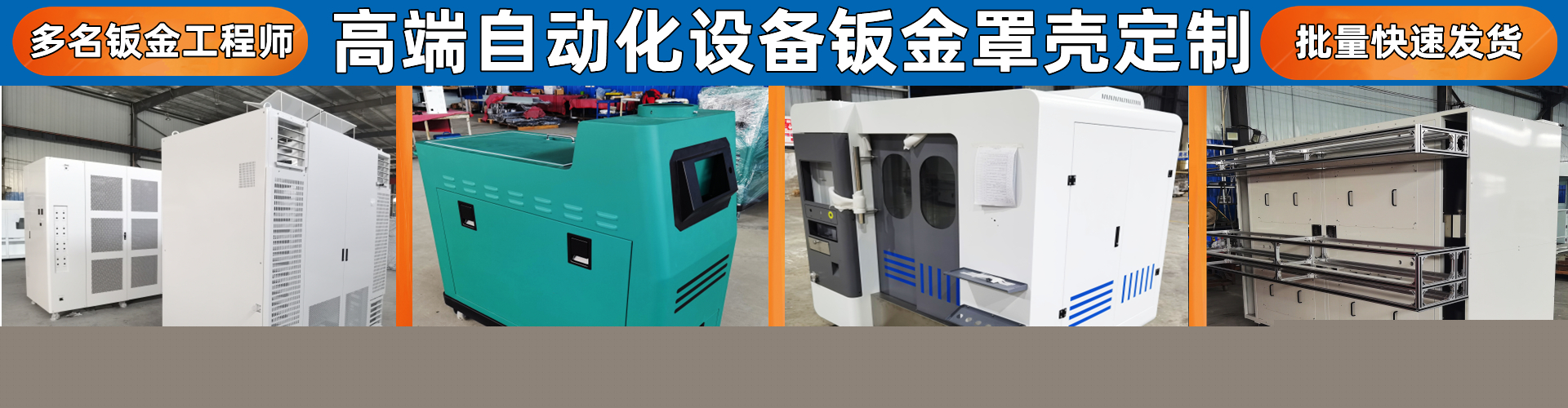 03 專業(yè)的鈑金加工設(shè)備 我們是專業(yè)金屬行業(yè)制造商,光纖鐳射切割機、數(shù)控NCT沖床、數(shù)控折床、鉚釘機、 壓力機、鋸床、冷焊機、氬弧焊機、二氧化碳焊機、鋁焊機、除油鋅系磷化池、噴 漆及噴塑設(shè)備;耗材、配件齊全。